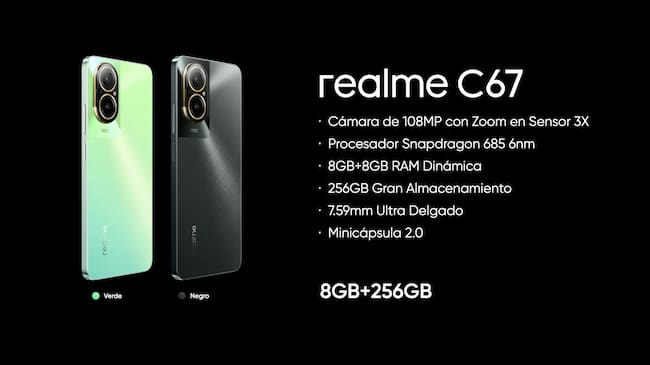 Especificaciones técnicas adicionales del realme c67