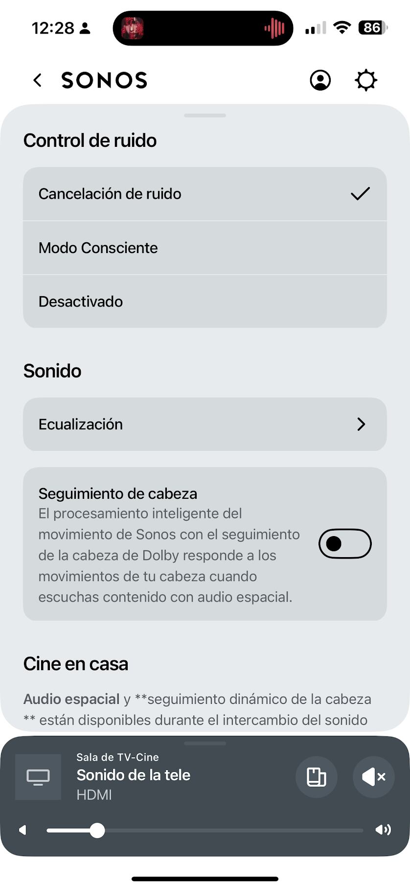 Una de las funciones más sorprendentes es el del seguimiento de cabeza que usa un procesamiento inteligente de movimiento propio de Sonos que en conjunto con la patente de Dolby, responde a los movimientos que hagamos con la cabeza cuando escuchemos contenido con audio espacial. La app también permite habilitar el modo Sala de TV del que hablaremos más adelante.