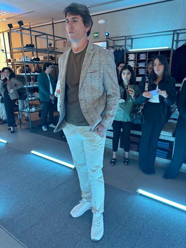 • El casual contempla una mezcla de piezas elegantes como los sacos o pantalones que se asemejan más a los formales, con playeras lisas de cuello redondo y tenis de colores que hagan juego con el look. Al igual que el informal, se usan los colores más naturales al estilo old money. La referencia es un hombre actual con distinguida elegancia italiana pura.