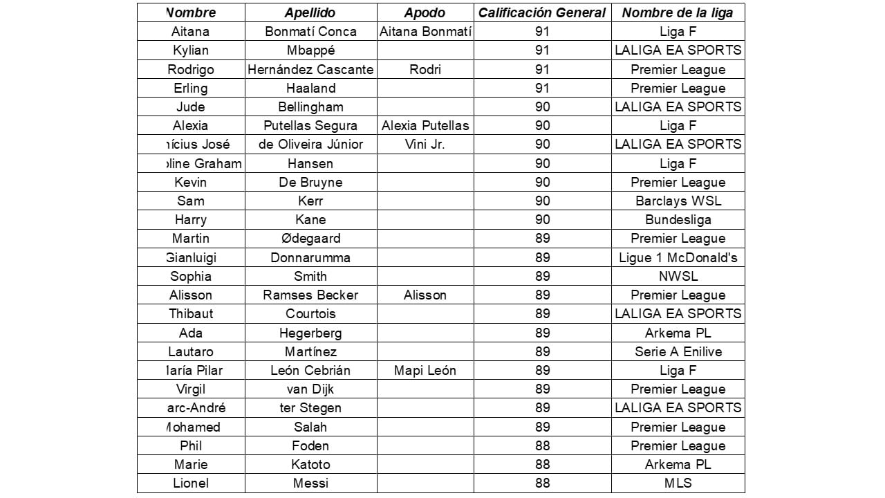 A continuación, encontrarás las calificaciones de los “Top 25” de EA SPORTS FC 25: