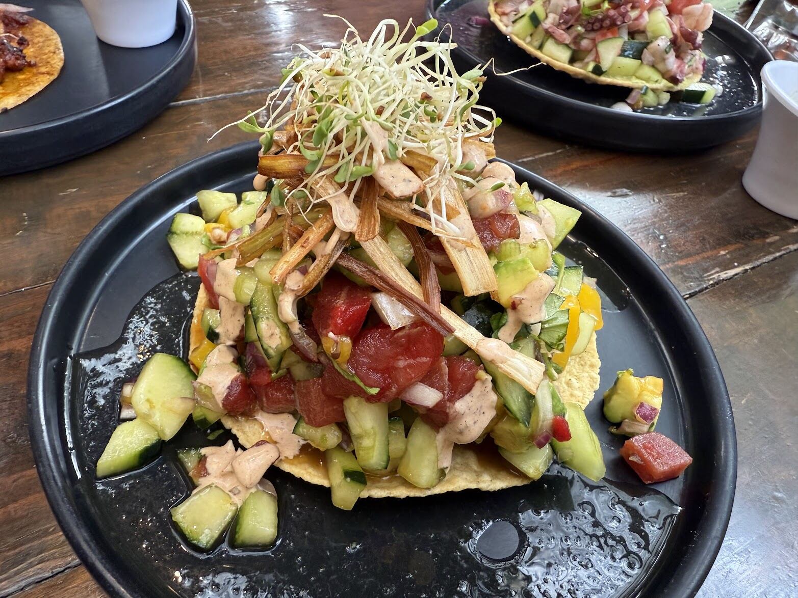 - Tostada de ceviche de coliflor