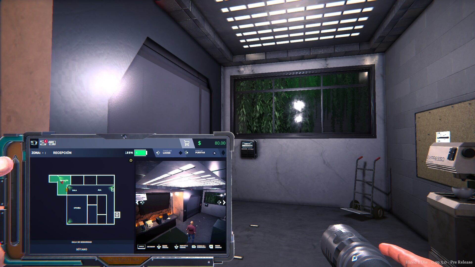Hired 2 Die te permite hacer todos los preparativos para antes de iniciar tu jornada, como es familiarizarte con el sistema de cámaras que te dejarán monitorear las demás salas y saber por dónde llegará la amenaza o donde está para poder fotografiarla. Además, podrás interactuar con sensores de movimiento que te harán tu labor más sencilla y prepararte para lo peor, así como poder cerrar remotamente algunas puertas, todo esto a través de una tableta que llevarás en tu bolsillo y que podrás usar en cualquier momento.