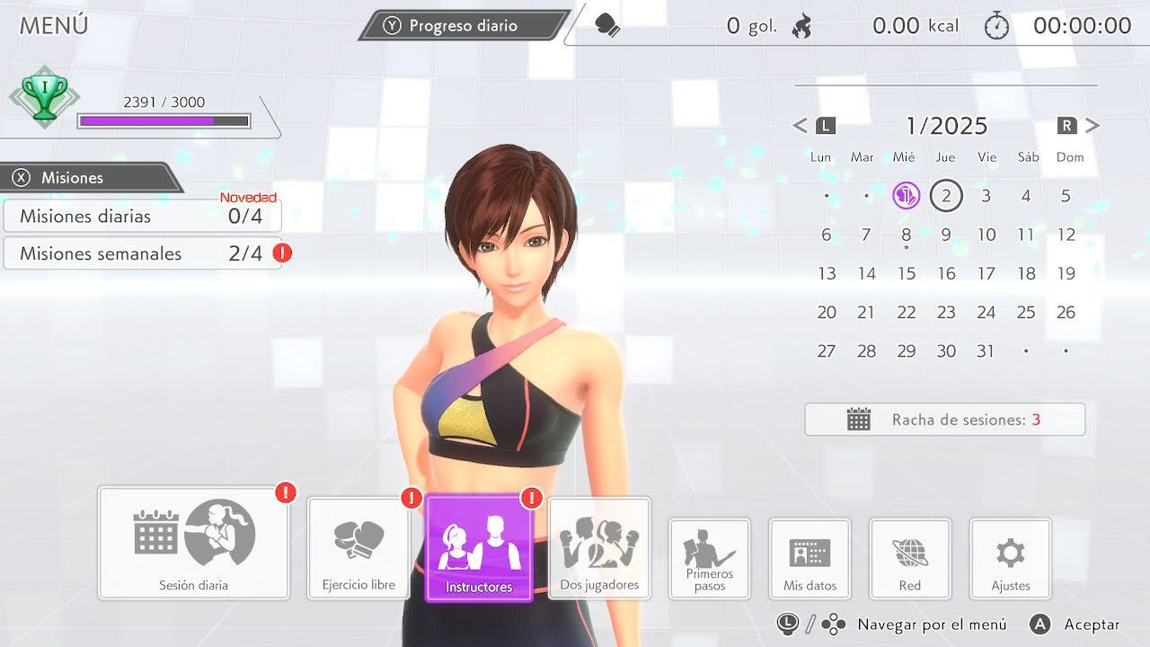 Entre los diversos ejercicios de boxeo que abarca están los jabs, ganchos, uppercuts y las esquivas. El juego mide tu progreso en función de la precisión de los golpes, el tiempo de ejercicio y las calorías quemadas, lo que te permite realizar un seguimiento de tus resultados y establecer metas personales, para ello, puedes actualizar tus datos con el tiempo, como por ejemplo, ir actualizando tu peso, para que el mismo juego vaya adaptando tus futuras rutinas en base a los objetivos que te estableciste al inicio.