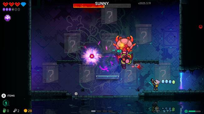 Así que el juego parece prometedor, y gracias a la fórmula del roguelite, el juego no se siente repetitivo y ofrece contenido diferente en cada intento, aunque el cambio visual de los escenarios no le caería mal al juego de vez en cuando, algo que probablemente podamos ver en la edición final de Neon Abyss 2.