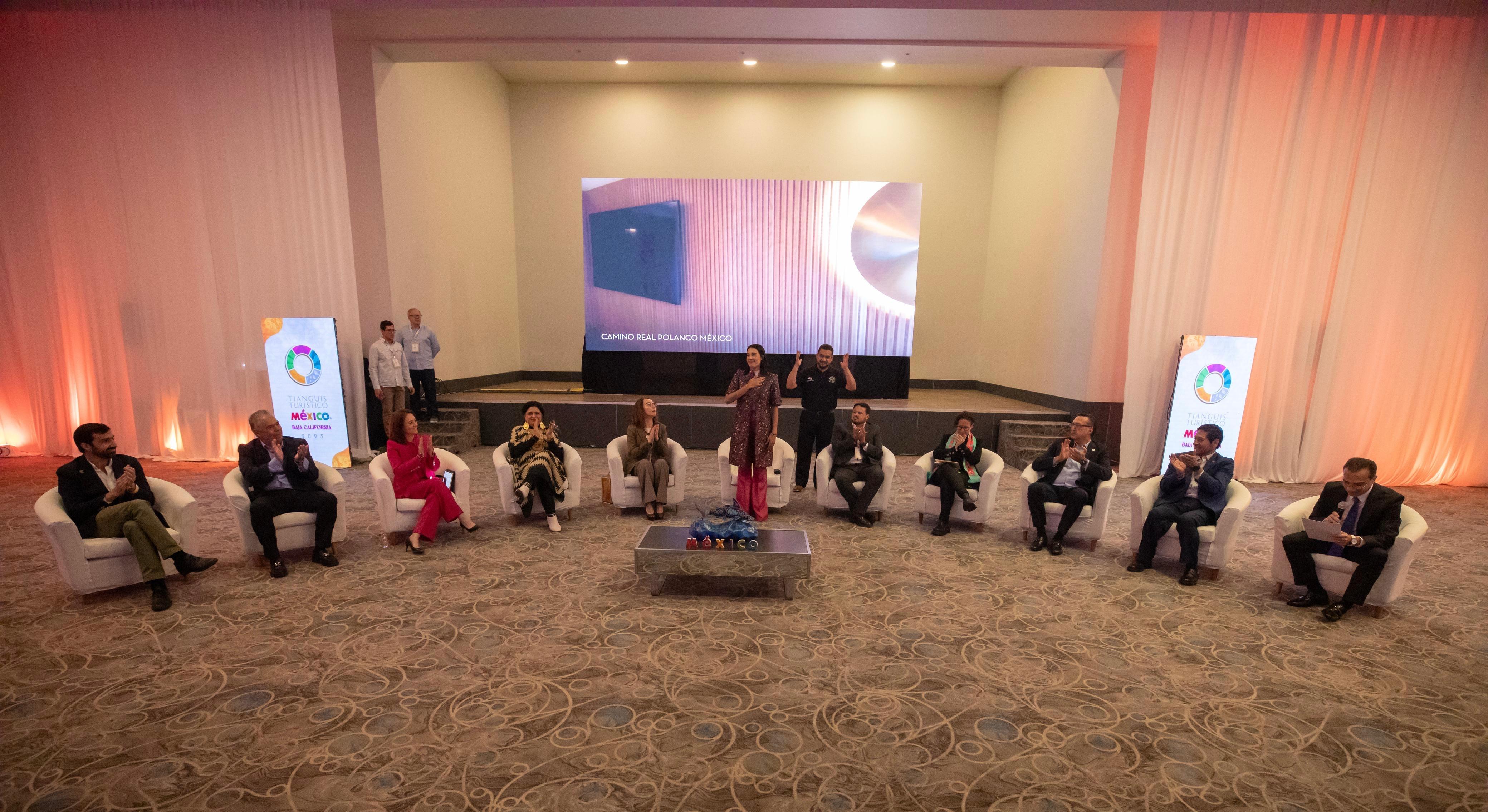 La secretaria de Turismo del Gobierno de México, Josefina Rodríguez Zamora, inauguró el “Diálogo de Capitanas y Capitanes de la Industria” en el Tianguis Turístico 2025, un espacio de conversación donde, líderes del sector, sostuvieron un panel sobre la Copa Mundial FIFA 2026 y, uno más, sobre la importancia de promover el turismo comunitario.