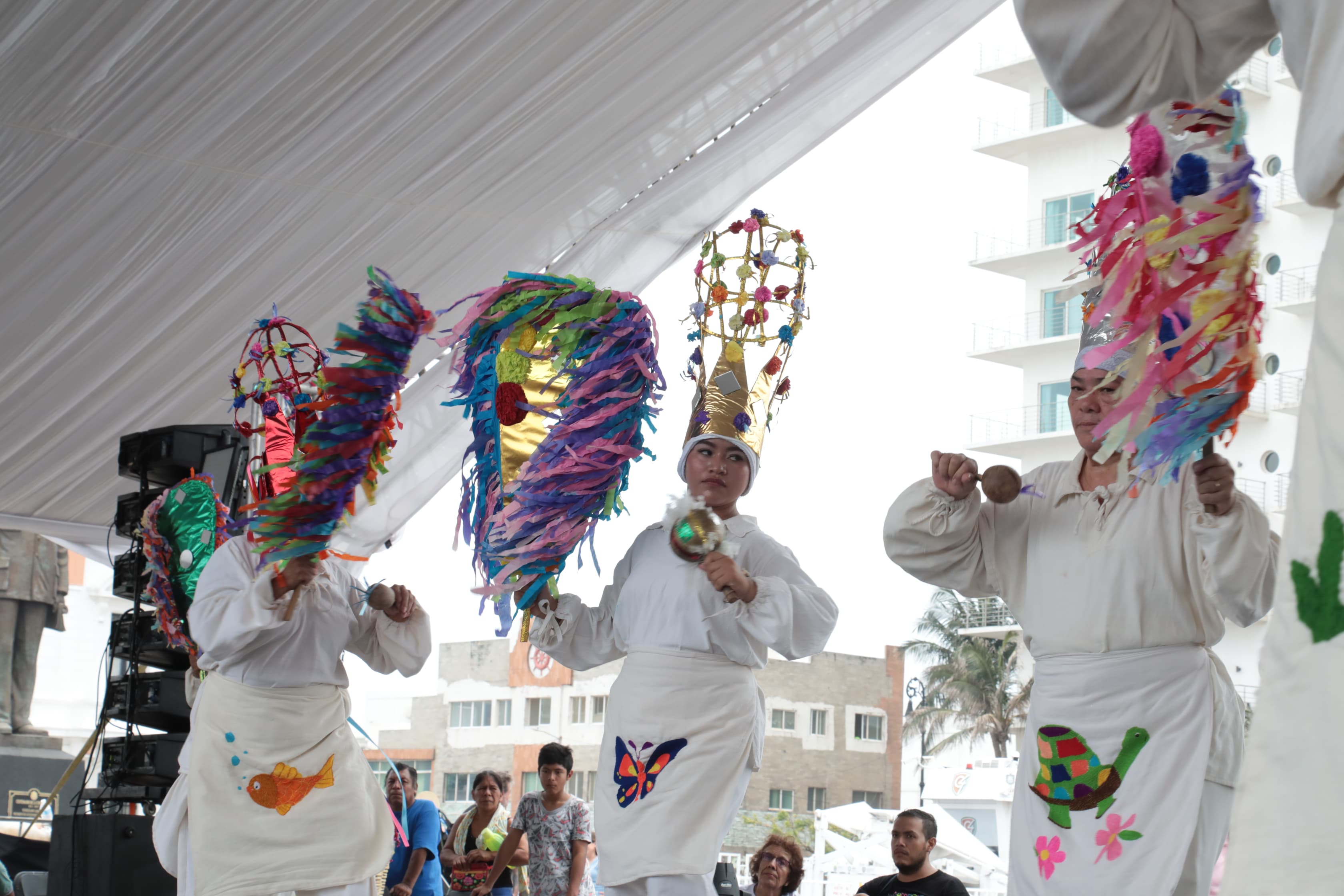El programa artístico iniciará a las 17:00 horas con la participación del trío infantil de son huasteco, danzas rituales como Los Huahuas de Papantla, Los Quetzales de Mecatlán, Los Negritos de Coatzintla y La Viejada de Tempoal.