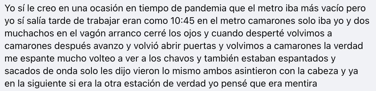 Desde entonces, no ha vuelto a usar ese transbordo. Y tampoco ha podido olvidar lo que vivió: “A veces tengo pesadillas con ese pasillo interminable… y hay algo que me sigue, pero cuando volteo nunca hay nada”.