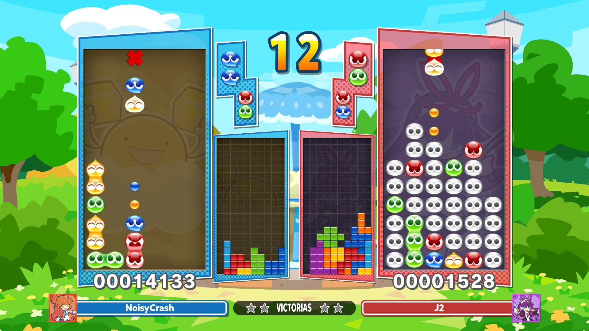 La jugabilidad se basa en conseguir la mayor cantidad de puntos a través de eliminar bloques de forma tradicional con Tetris, o juntando slimes del mismo color en el caso que sea Puyo Puyo, y aunque ese es el concepto básico, lo interesante está en que puedes jugarlo a través de desafíos, modos de juego y sobre todo en pantalla dividida con hasta 4 jugadores más.