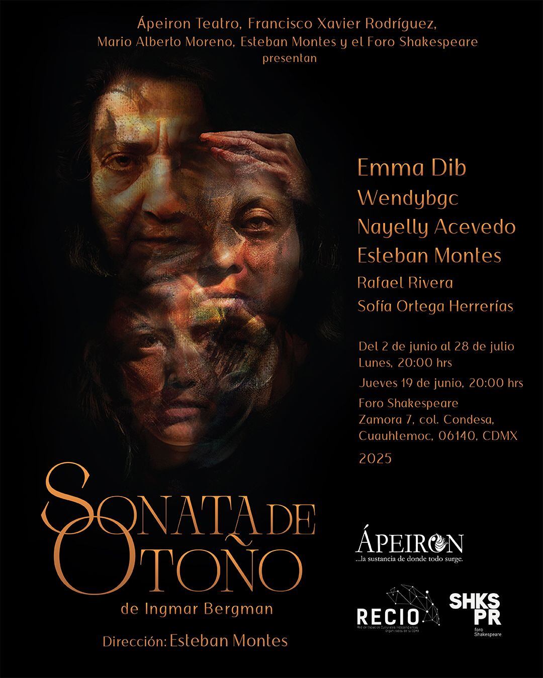 Este montaje es una doble celebración para nosotros: marca los 28 años de trayectoria ininterrumpida de Ápeiron Teatro y el inicio de los festejos Rumbo a los 50 años de la creación de Sonata de Otoño (1977-2027).