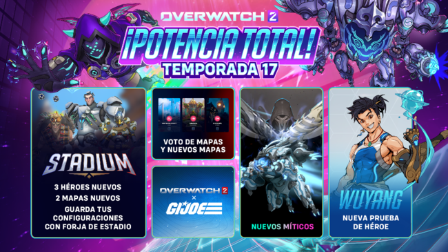 La temporada 17 de Overwatch 2 trae un arsenal de contenido nuevo y mejoras, desde innovaciones en el modo Estadio hasta la esperada votación de mapas, dos nuevos diseños míticos y un Pase de Batalla cargado de estilo. Conoce todos los detalles a continuación.