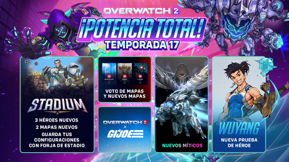 La temporada 17 de Overwatch 2 trae un arsenal de contenido nuevo y mejoras, desde innovaciones en el modo Estadio hasta la esperada votación de mapas, dos nuevos diseños míticos y un Pase de Batalla cargado de estilo. Conoce todos los detalles a continuación.