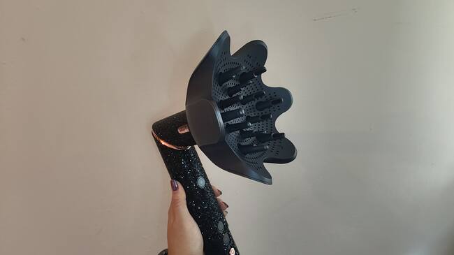 - Difusor: este accesorio es una joya para las onduladas y las rizadas. Seca a la perfección, dejando tus rizos sedosos y definidos (recuerda aplicar tu rutina favorita antes de usarlo). Además, su diseño innovador permite extender los dientes del difusor, asegurando que tu cabello se mantenga en su lugar para un secado más eficiente.
