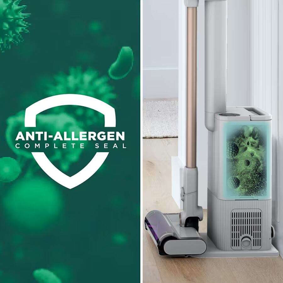 La base de vaciado automático puede almacenar polvo y alérgenos hasta por hasta 30 días, capturando y atrapando el 99.97% de partículas y alérgenos gracias a su filtración True HEPA. Esto es especialmente beneficioso para personas con alergias.