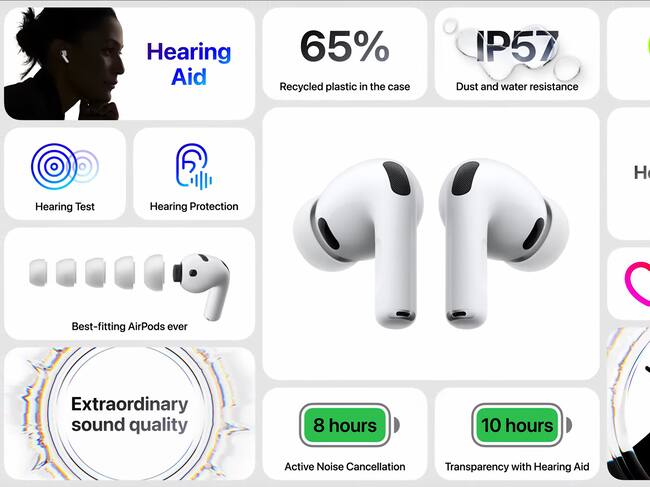 Además, con la integración de la Inteligencia de Apple, los AirPods Pro 3 ofrecen traducción en tiempo real, permitiendo conversaciones fluidas entre dos personas que hablan idiomas diferentes. El diseño, más pequeño y con cinco tamaños de almohadillas, asegura un ajuste seguro y cómodo, ideal para los atletas, y su resistencia al agua con clasificación IP57 garantiza durabilidad. Todo esto, manteniendo el precio de $249 dólares y una batería extendida de hasta ocho horas con una sola carga.