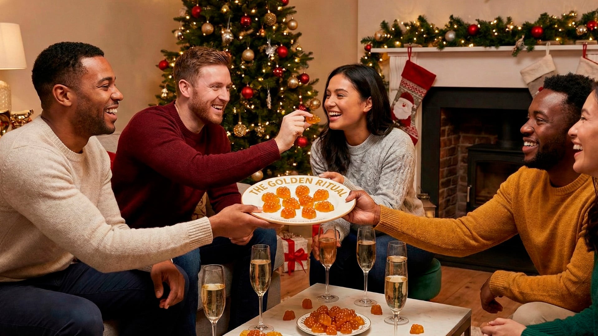Apróximadamente 15 minutos antes de año nuevo, entrega a tus invitados algo completamente distinto y disruptivo, como por ejemplo de 3 a 4 The Golden Ritual, unas gomitas hechas a base de cerveza Miller High Life; puedes hacerlo completamente en silencio o con alguna playlist de meditación en Spotify o YouTube Music.