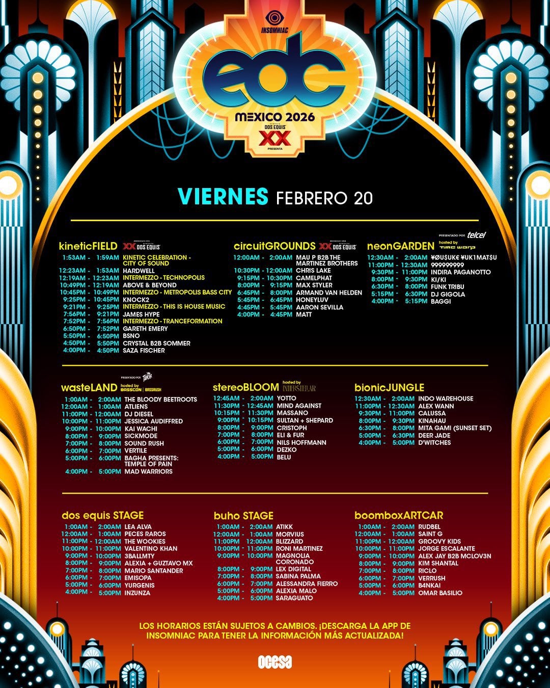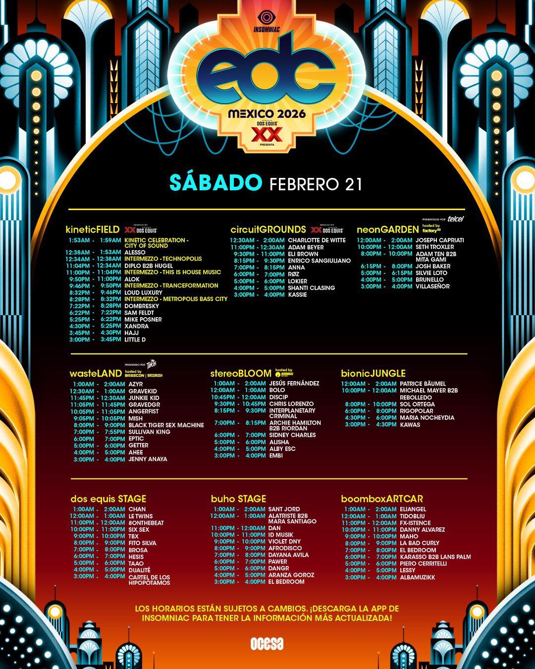 Descarga la app para que puedas seguir en tiempo real los sets y los ya que los organizadores del festival advirtieron que estos están sujetos a cambios.