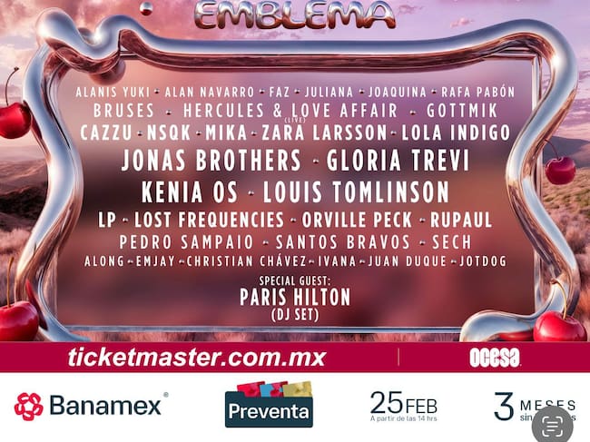 - 25 de febrero, 14:00 horas: inicio de la venta de boletos Tecate Emblema 2026.