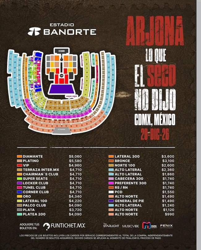 Ricardo Arjona en México: precios oficiales por zona para el concierto en el Estadio Banorte ¿qué zona te conviene?
