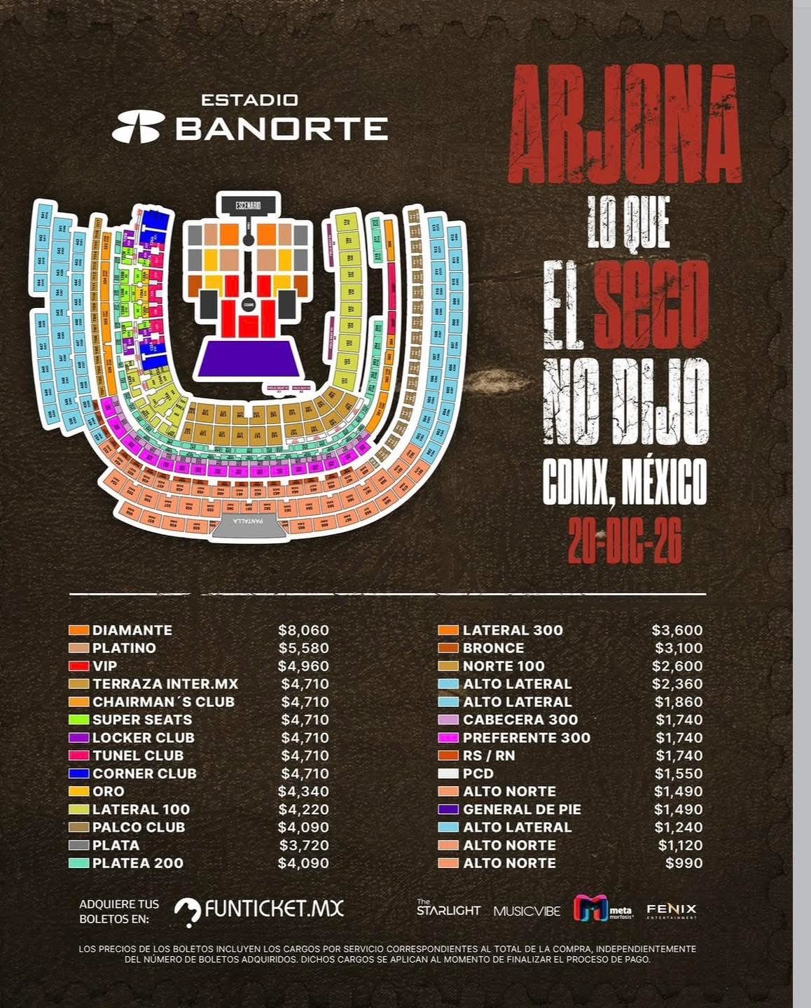 Si piensas asistir, aquí te dejamos los precios detallados por zonas, para que no te agarre desprevenido o desprevenida la venta de boletos.