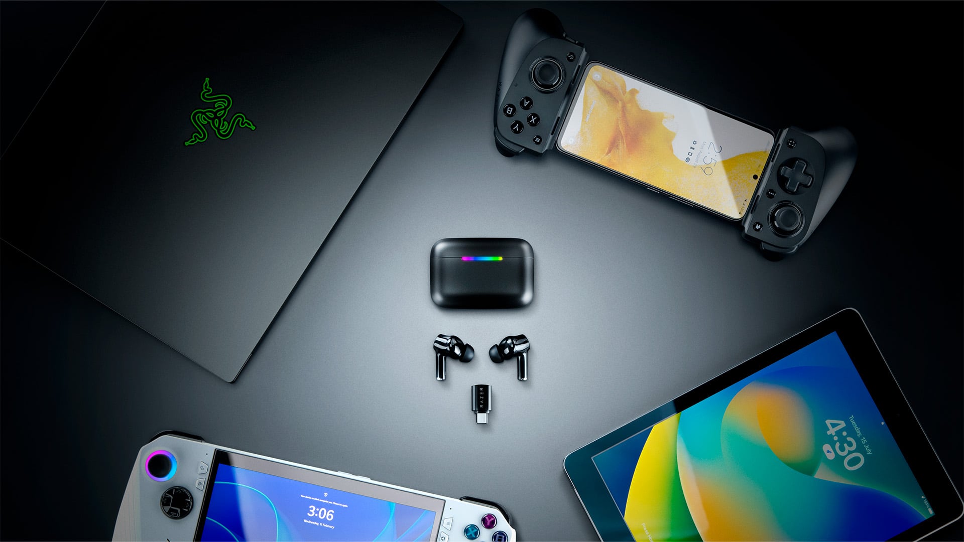 Uno de los puntos críticos de cualquier dispositivo inalámbrico es la autonomía. Razer ha optimizado el consumo para ofrecer hasta 40 horas de uso total: 10 horas continuas en los auriculares y 30 horas adicionales gracias a la carga del estuche. Además, el diseño del estuche permite conectarlo directamente vía USB-C para jugar y cargar simultáneamente, asegurando que nunca te quedes a mitad de una partida importante.