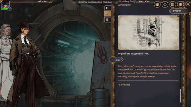 Es precisamente ahí donde entran en juego las mecánicas de rol. En cada conversación o situación importante, el jugador puede investigar, interrogar, intimidar o buscar salidas alternativas. Las habilidades de Gia influyen directamente en estas decisiones, y en muchos casos el resultado depende de tiradas de dados, lo que añade un componente de incertidumbre. Algunas situaciones pueden resolverse de forma pacífica, mientras que otras escalan rápidamente hacia el conflicto, a veces sin que lo esperemos.