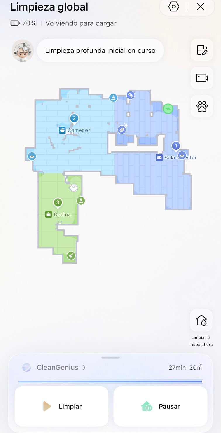 Una característica destacada es que el robot puede dejar las mopas en su base de carga automáticamente cuando solo necesita aspirar alfombras, evitando que estas se mojen. Este es uno de los procesos que cambió en la forma de limpiar vs la Dreame X50 Max Ultra.