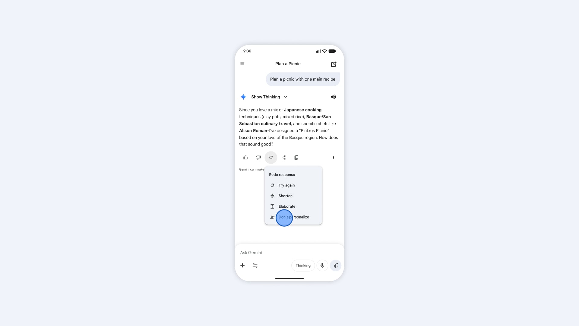 Además, si en algún momento sientes que una respuesta no es la adecuada, puedes utilizar el botón "Volver a intentar" para obtener un resultado sin personalización o marcarlo con un "No me gusta" para refinar el aprendizaje del sistema. Si prefieres que Gemini no recuerde interacciones pasadas, puedes inhabilitar la opción de "Chats anteriores" en la configuración, manteniendo el control total sobre tu huella digital en todo momento.