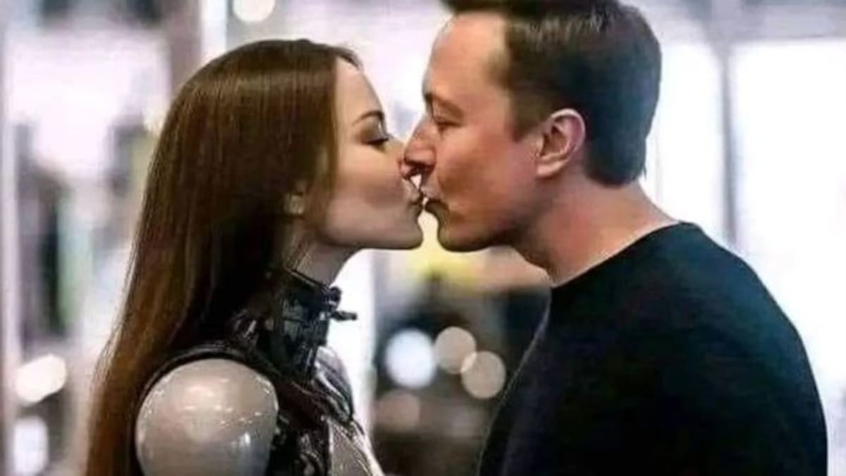 Se ha viralizado la imagen del empresario besando a una mujer robot