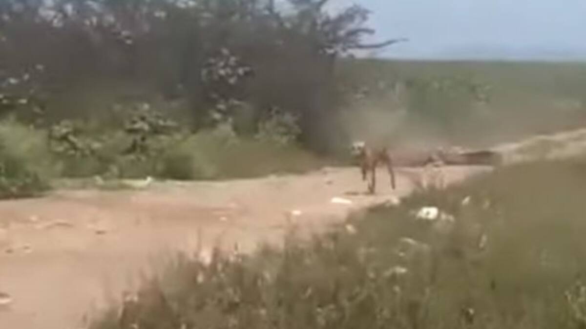 El valiente lomito ahuyentó al enorme reptil