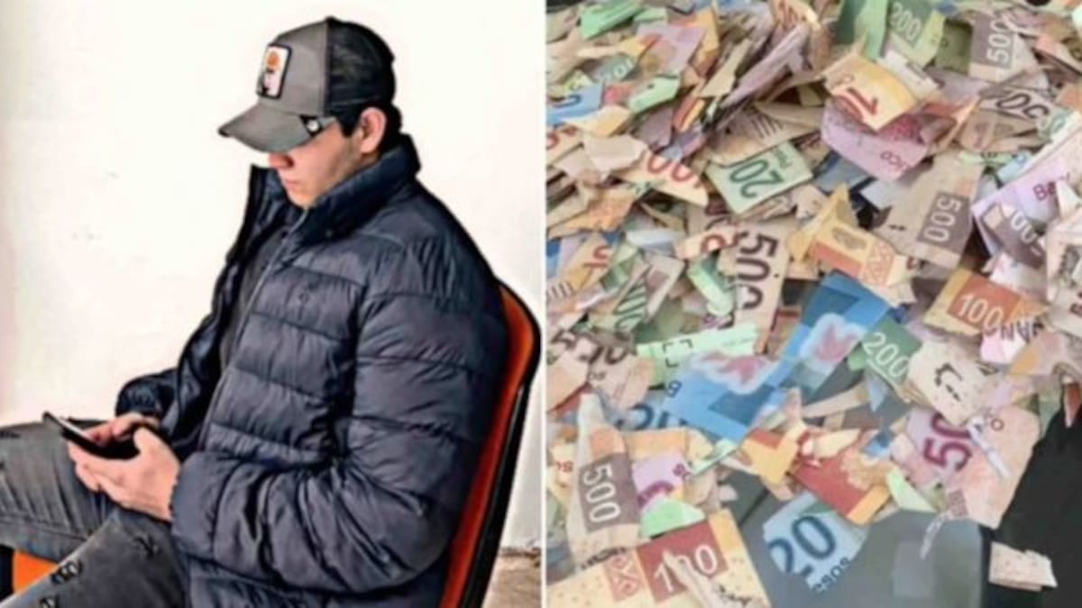 La niña recortó los billetes que su primo había ahorrado