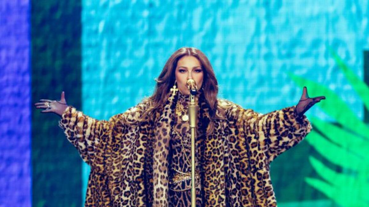 La cantante perdió su asiento, resbaló y casi cae y todo por culpa de su sombrero