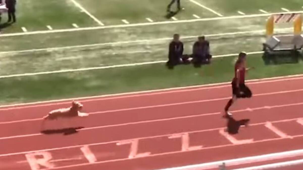 La cachorra se convirtió en la protagonista tras adelantar a la atleta que iba en primera posición.