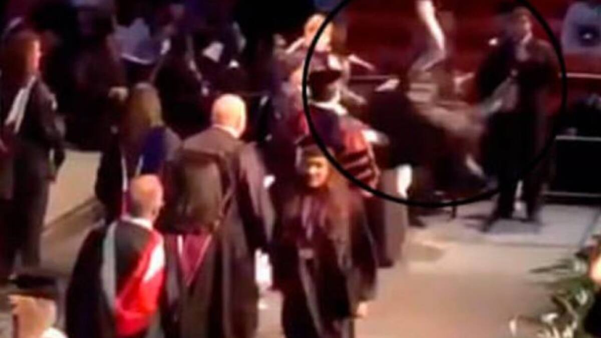 Quiso recibir su diploma haciendo un mortal hacia enfrente que no le salió muy bien