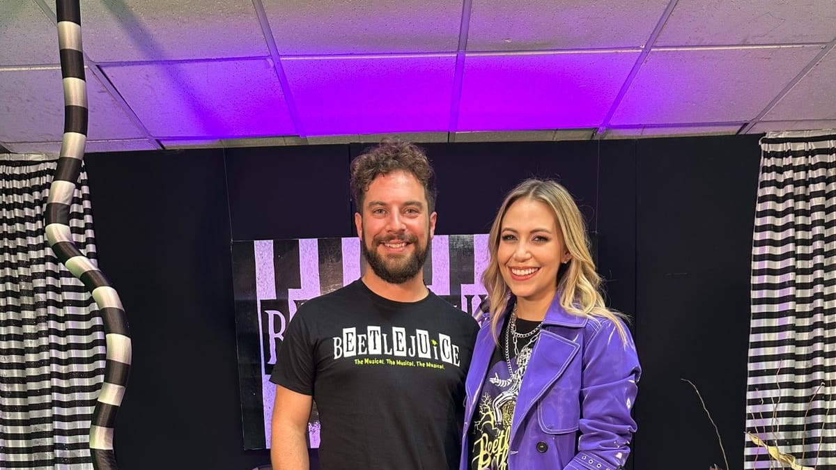 Justin Collet intérprete de Beetlejuice en "Beetlejuice: El Musical" de Broadway con Gaby Cam en el Brunch de LOS40