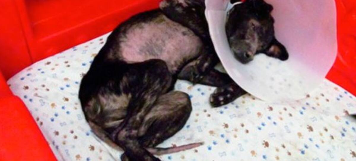 Es un labrador negro que durante meses sufrió inflamación en la piel y pérdida de pelo sin explicación