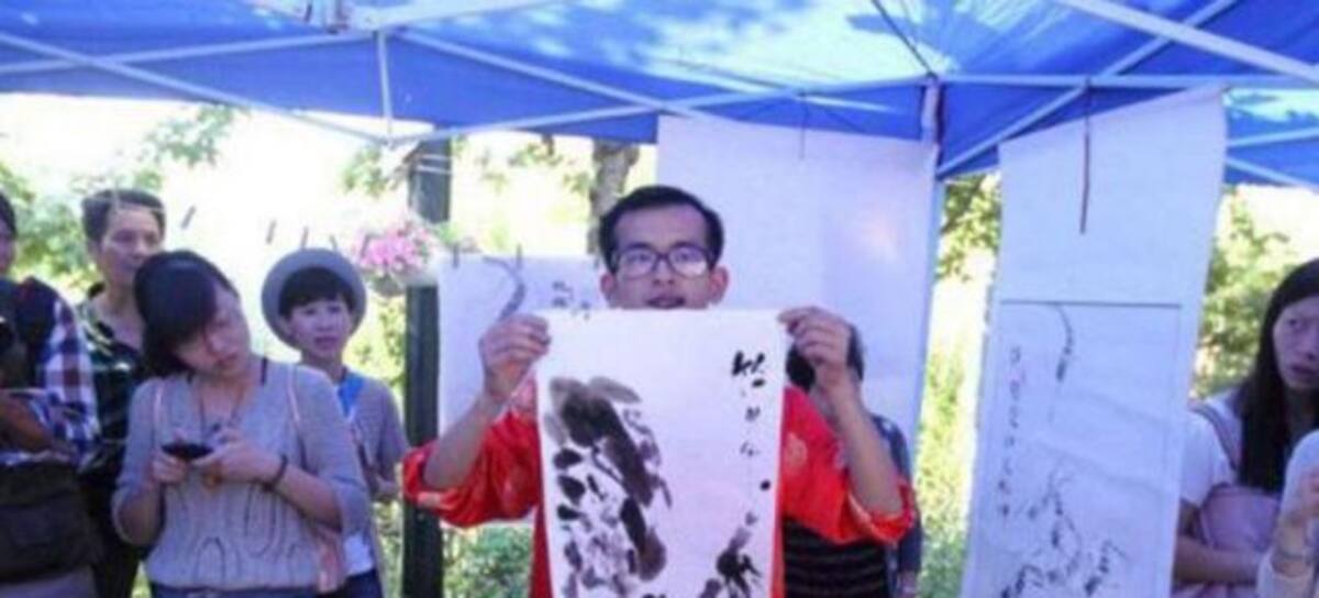 Han Xiaoming, es un artista que tiene un lema que guía su carrera: ‘mejor que decir, es hacer’. Por eso en vez de usar su lengua para hablar, la utiliza para pintar.