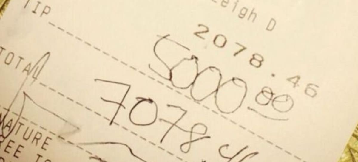 A través de la cuenta 'TipsforJesus', este millonario comparte las propinas que deja en los bares donde cena o come. Los camareros, como es normal, posan de lo más feliz.