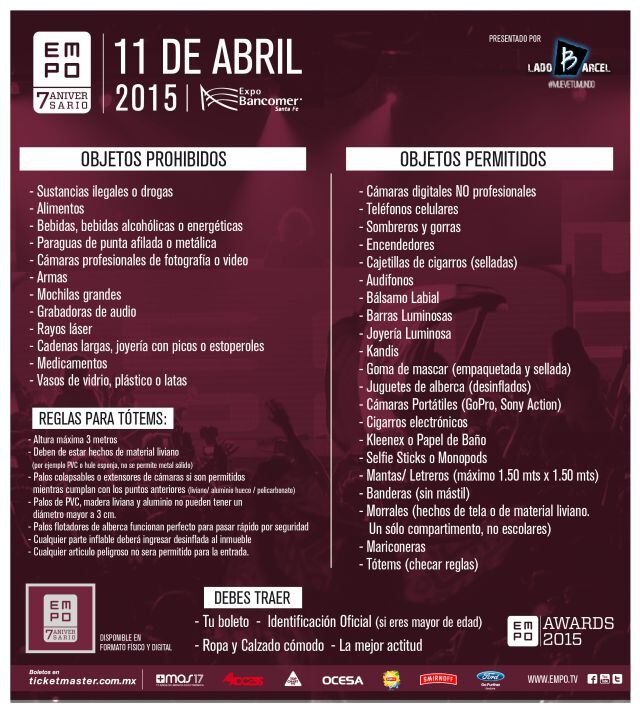 Los objetos permitidos/prohibidos para este evento: