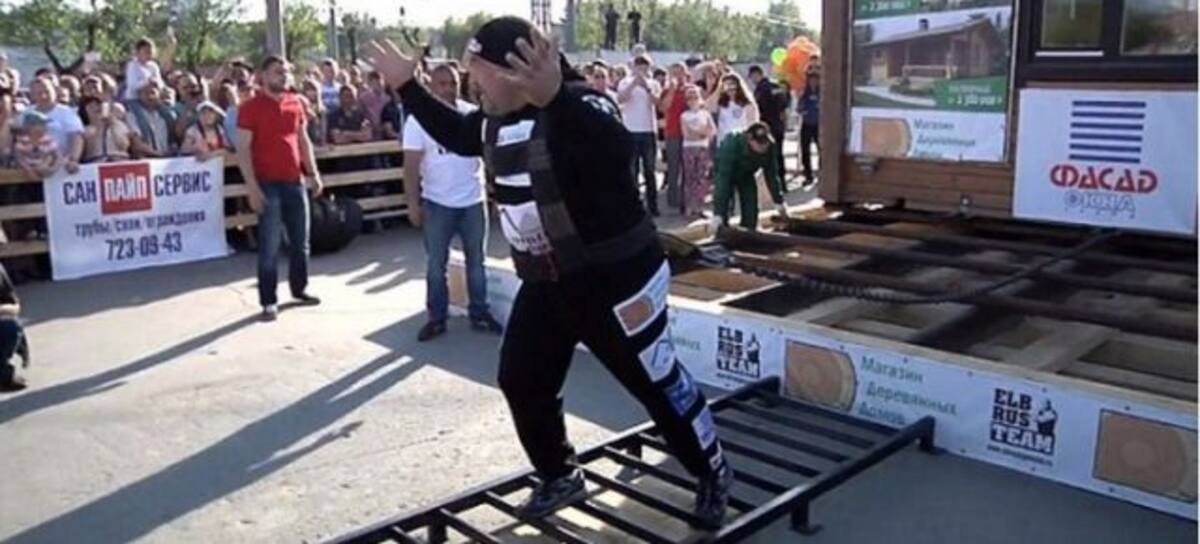 Elbrús Nigmatullin es considerado el hombre más fuerte de Rusia; esta vez arrastró una casa de madera de dos pisos totalmente amueblada. Con mucho esfuerzo físico, fue capaz de superar el récord mundial y mover el inmueble.