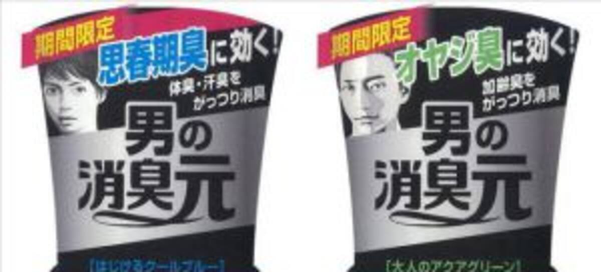 Bajo el lema "un ambiente siempre fresco y limpio", uno de los botes de color azul muestra la imagen de un joven japonés acompañado del término "kaku" (eficaz), mientras que otro, de color verde, ha sido diseñado con la ilustración de un hombre más maduro.