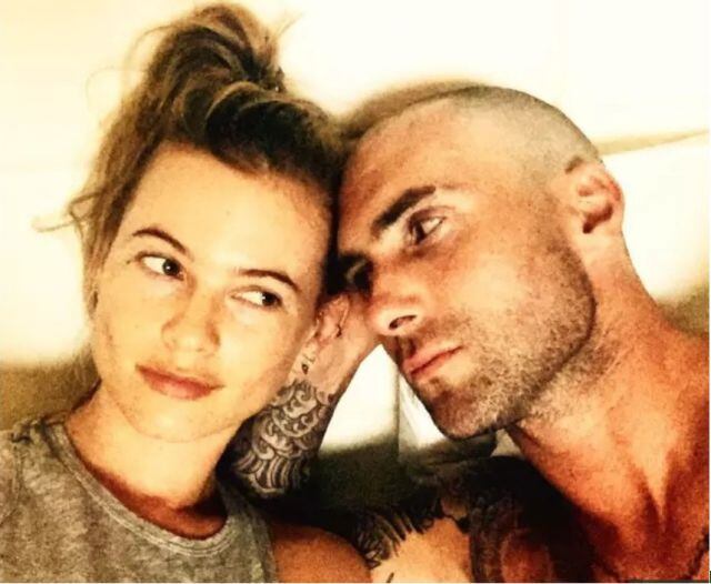 El cantante publicó en su cuenta de Instagram una fotografía en la que luce rapado junto a su esposa, la modelo Behati Prinsloo. El mensaje que escribió junto a la instantánea fue: "Ella está interesada en mí...creo".