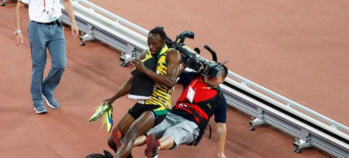 El jamaicano Usain Bolt fue derribado por una cámara de televisión