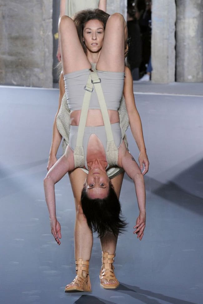 Rick Owens siempre ha sido muy creativo para sus pasarelas y encontró la manera de superarse, ahora todos los asistentes a su desfile en la Semana de la Moda en París quedaron boquiabiertos ya que su reciente colección fue presentada por modelos que estaban atadas por cuerdas.