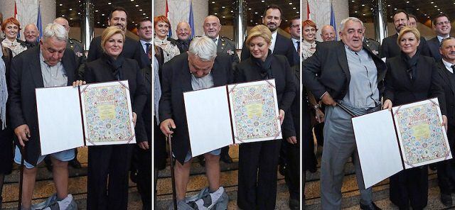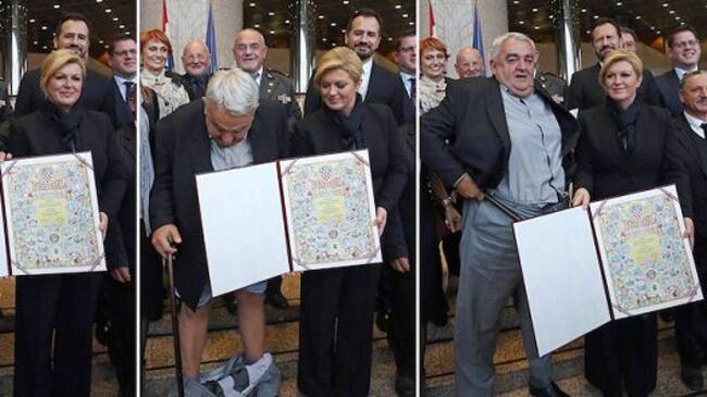 Con toda la Decisión del mundo subió al escenario para recibir un premio por su trabajo en derechos humanos, el premio se le entregó de la mano de la mismísima presidenta de su país Kolinda Grabar-Kitarović y Justo al momento de la foto, el pantalón se le fue abajo inesperadamente, dejando ver a todo el mundo su seductora ropa interior.
