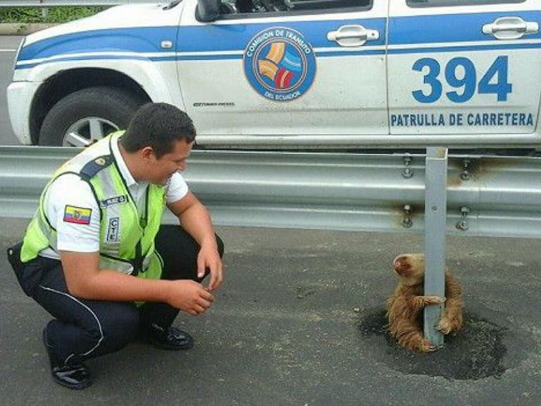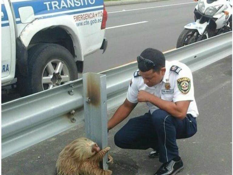 El simpático animalito fue rescatado por policías de tránsito, quienes crearon la fama del perezoso mediante el Facebook de la Comisión de Tránsito de Ecuador.