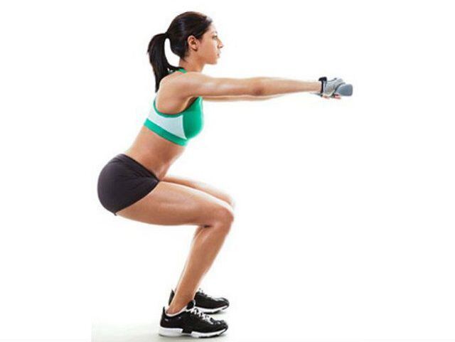 Párate con los pies ligeramente separados y paralelos a los hombros. Puedes colocar tus manos en las caderas o estirar los brazos hacia adelante. Entonces debes ir en cuclillas lentamente hacia la cadera, como si quisiera empujar algo hacia atrás con las pompas, y asegurarte de que tus rodillas estén detrás de los dedos del pie. Mantén la espalda recta.