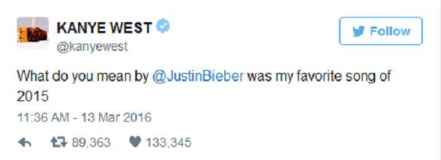 Bueno, para que vean que no somos los únicos que nos ha entrado la Bieber Fever, existe un cantante que le gusta su música y no le da pena admitirlo. Kanye West tuvo una revelación en Twitter, y afirmó que su canción favorita del 2015 fue What Do You Mean?