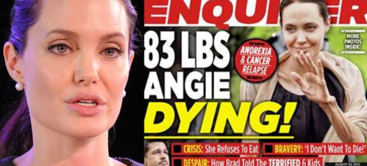Con el título de "Una moribunda Angie... perdiendo la batalla. ¡35 kilos y hospitalizada!", la portada de este lunes del periódico sensacionalista estadounidense, mostró a una Jolie desgastada y muy delgada.