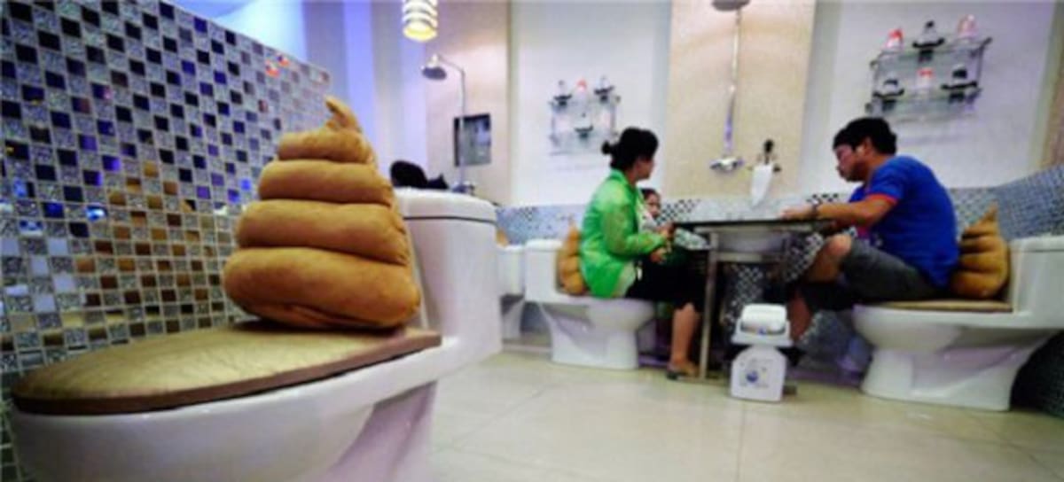 En la provincia de Shanxi, China, abrió un nuevo restaurante con una particularidad... está ambientado como si fuera un baño, con inodoros y duchas incluido