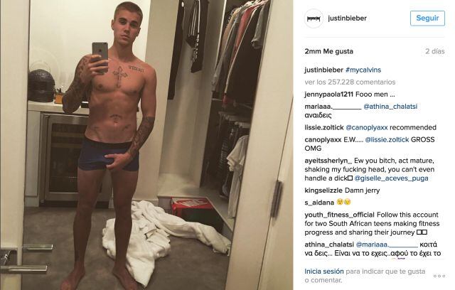 Recientemente, el canadiense publicó una selfie en ropa interior que se convirtió en una de las favoritas para sus fans. El cantante posó frente al espejo en ropa interior.